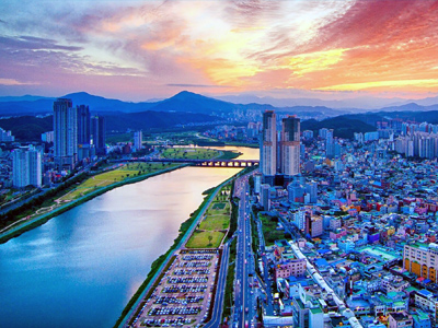 A coastal city in East Asia facing the sea. It has a significant industrial background while maintaining coastal geographic features. Commonly followed routes include those along the shoreline.